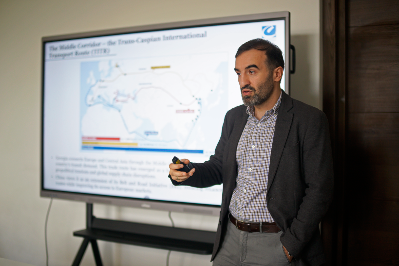 Additionally, lectures were organized for the students with the participation of lecturers from the Caucasus School of Business and the Caucasus School of Technology on the following topics: “Trade Flow Diversion, Sanctions Evasion and the Role of the “New” Transit Corridors between Europe and Asia: the Case of Georgia" (Vakhtang Partsvania) and “Transport Modeling” (Tengiz Ugulava).