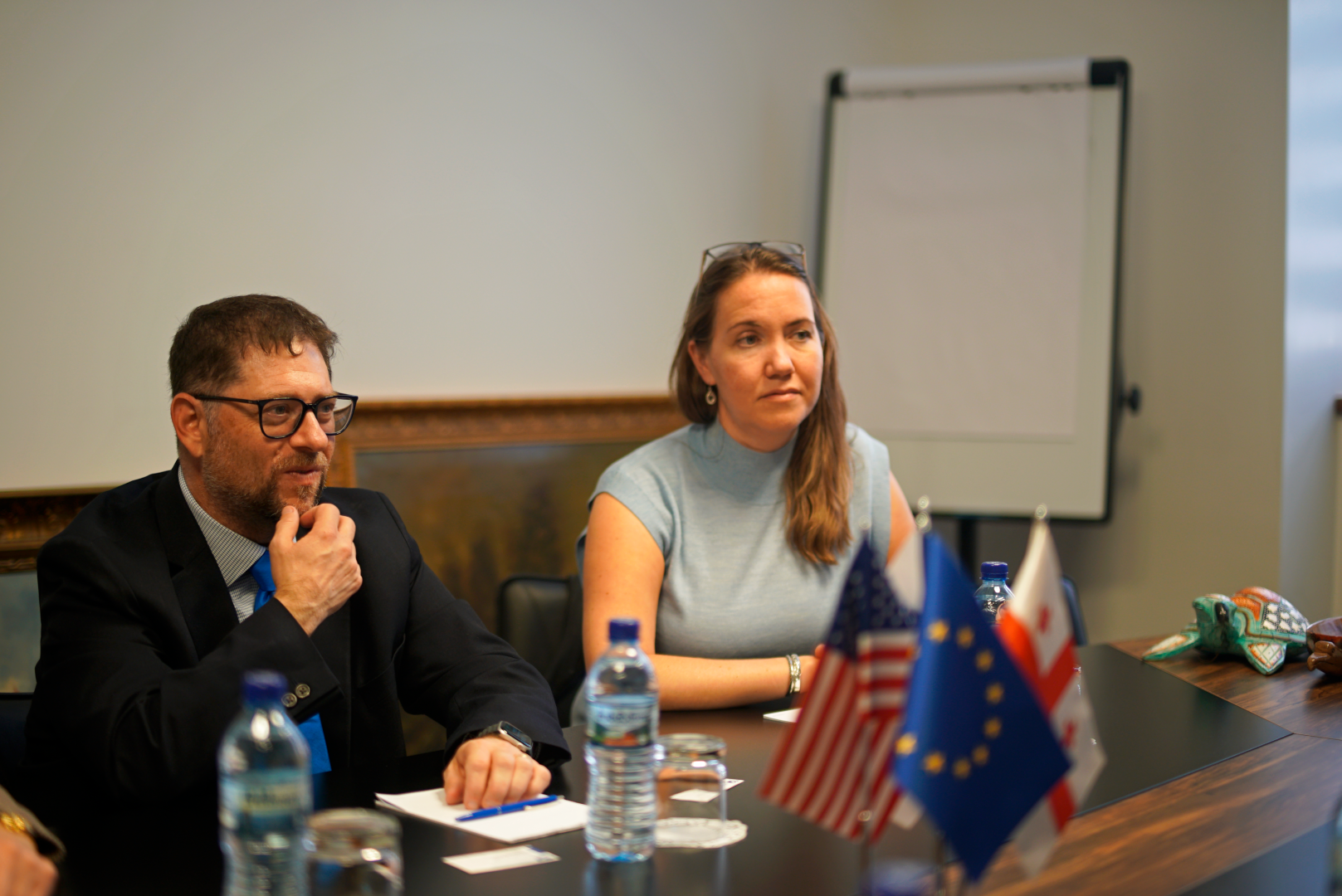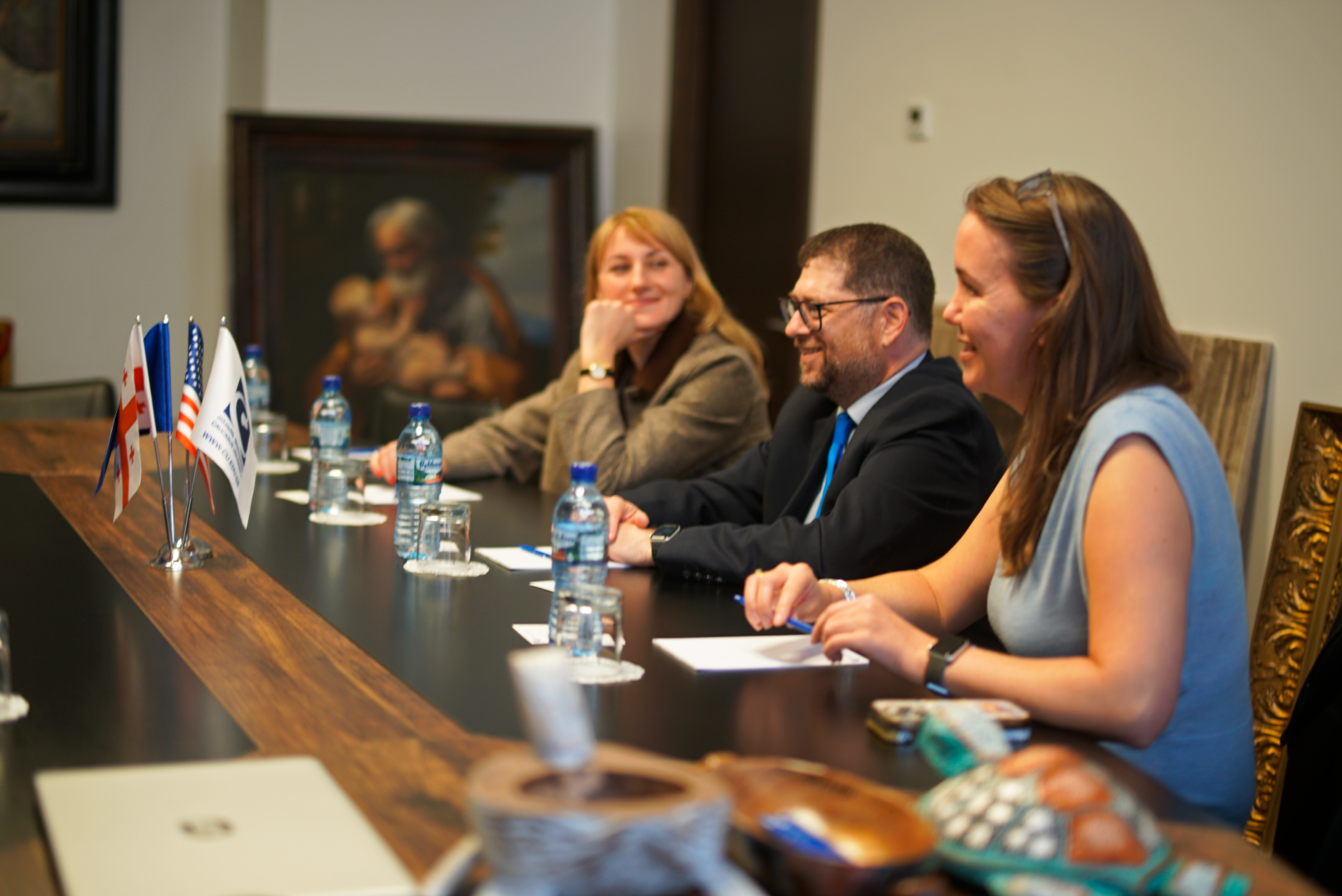 Eavan Cully, Cultural Affairs Officer Sophie Bzishvili, Higher and Vocational Programs Coordinator. From Caucasus University, the meeting was attended by Irena Melua, Vice President for Internationalization, and Akaki Kapanadze, Director of the Projects Department.