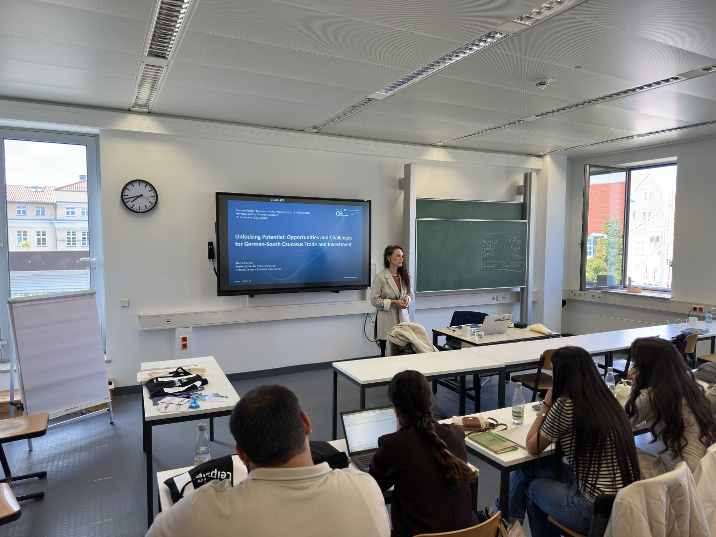 საზაფხულო სკოლა ორ ეტაპად განხორციელდა- პირველი ნაწილი დისტანციურ ფორმატში მოიცავდა ლექციებს მაკროეკონომიკასა (ბოდო შტურმი) და ვაჭრობის პოლიტიკის საფუძვლებზე (ტატევიკ ვარდანიანი), ასევე ინტერკულტურულ ბიზნეს კომუნიკაციაზე. მეორე ნაწილი კი ლაიფციგში გაიმართა და მოიცავდა სასწავლო სესიებს, პრაქტიკულ სამუშაოებს, თემატურ პრეზენტაციებსა და საგანმანათლებლო ექსკურსიებს. პროგრამაში მონაწილეობა მიიღეს კავკასიის უნივერსიტეტის ბიზნესისა და ეკონომიკის სკოლების საბაკალავრო საფეხურის სტუდენტებმა.