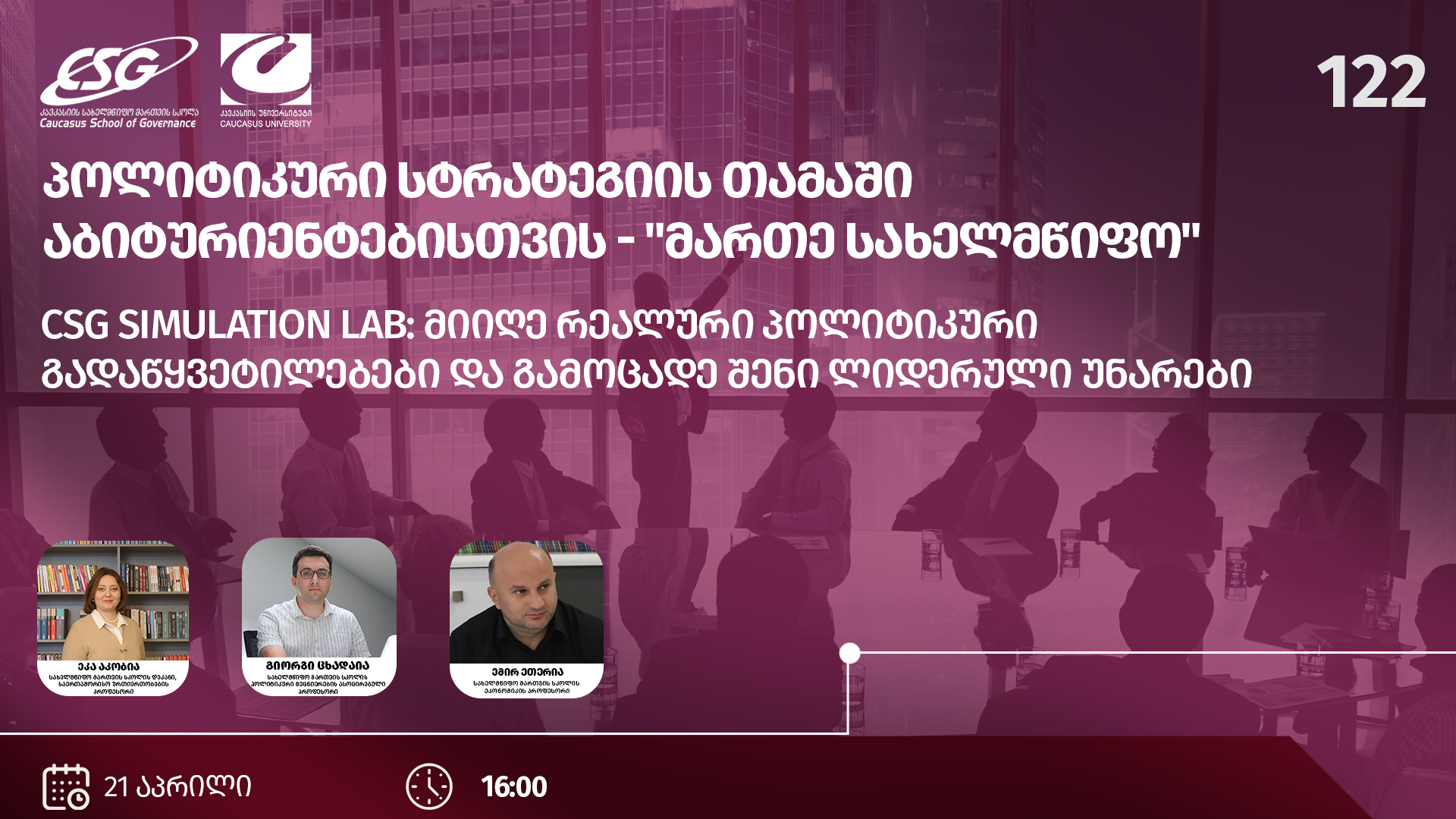- სახელმწიფო მართვის სკოლის სიმულაციური თამაში აბიტურიენტებისთვის „მართე სახელმწიფო“