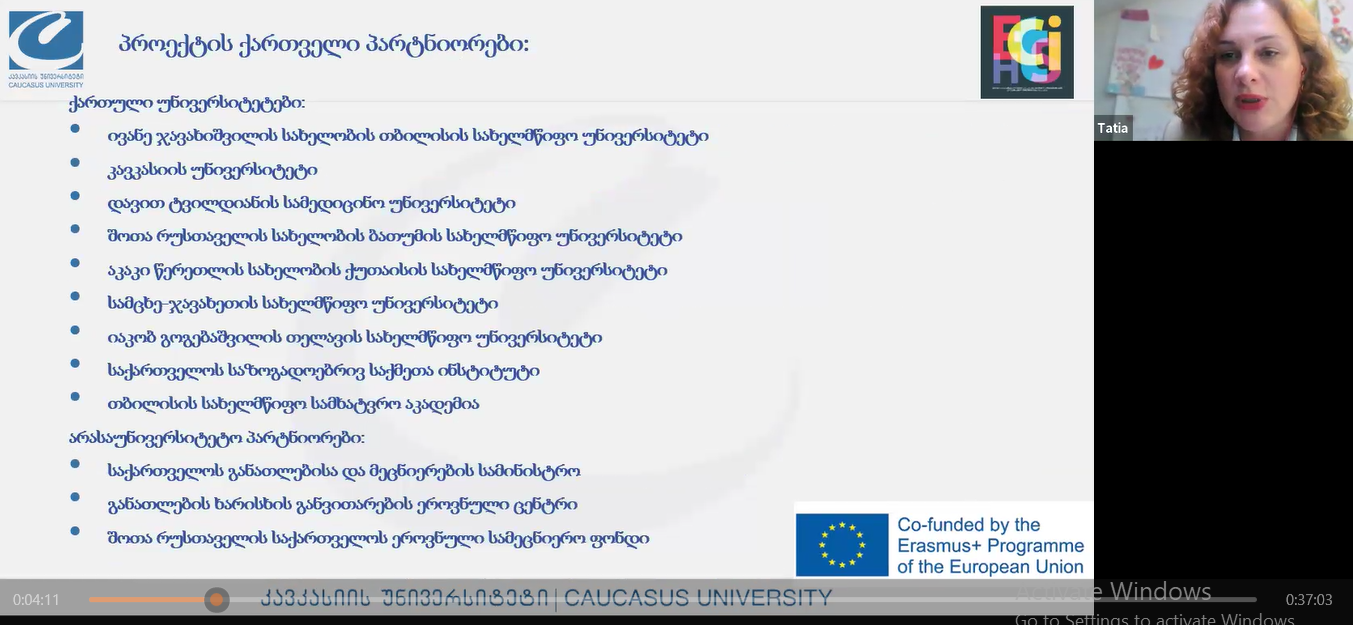 20 ოქტომბერს, კვლევის ეთიკისა და კეთილსინდისიერების კვირეულის ფარგლებში გაიმართა საინფორმაციო ონლაინშეხვედრა მიმდინარე საერთაშორისო პროექტის - „კვლევის პასუხისმგებლობიანად წარმართვა – კვლევის კეთილსინდისიერება და ეთიკა ქართულ უნივერსიტეტებში (ETHICS)“ - შესახებ.