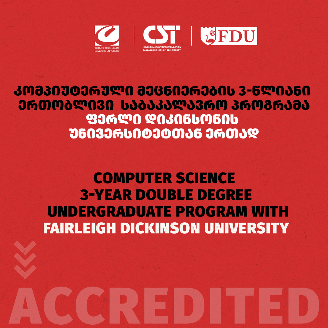 კომპიუტერული მეცნიერების 3-წლიანმა ერთობლივმა საბაკალავრო პროგრამამ, რომელსაც კავკასიის უნივერსიტეტი და ფერლი დიკინსონის უნივერსიტეტი ერთობლივად ახორციელებს, მიიღო უპირობო 7 წლიანი აკრედიტაცია.