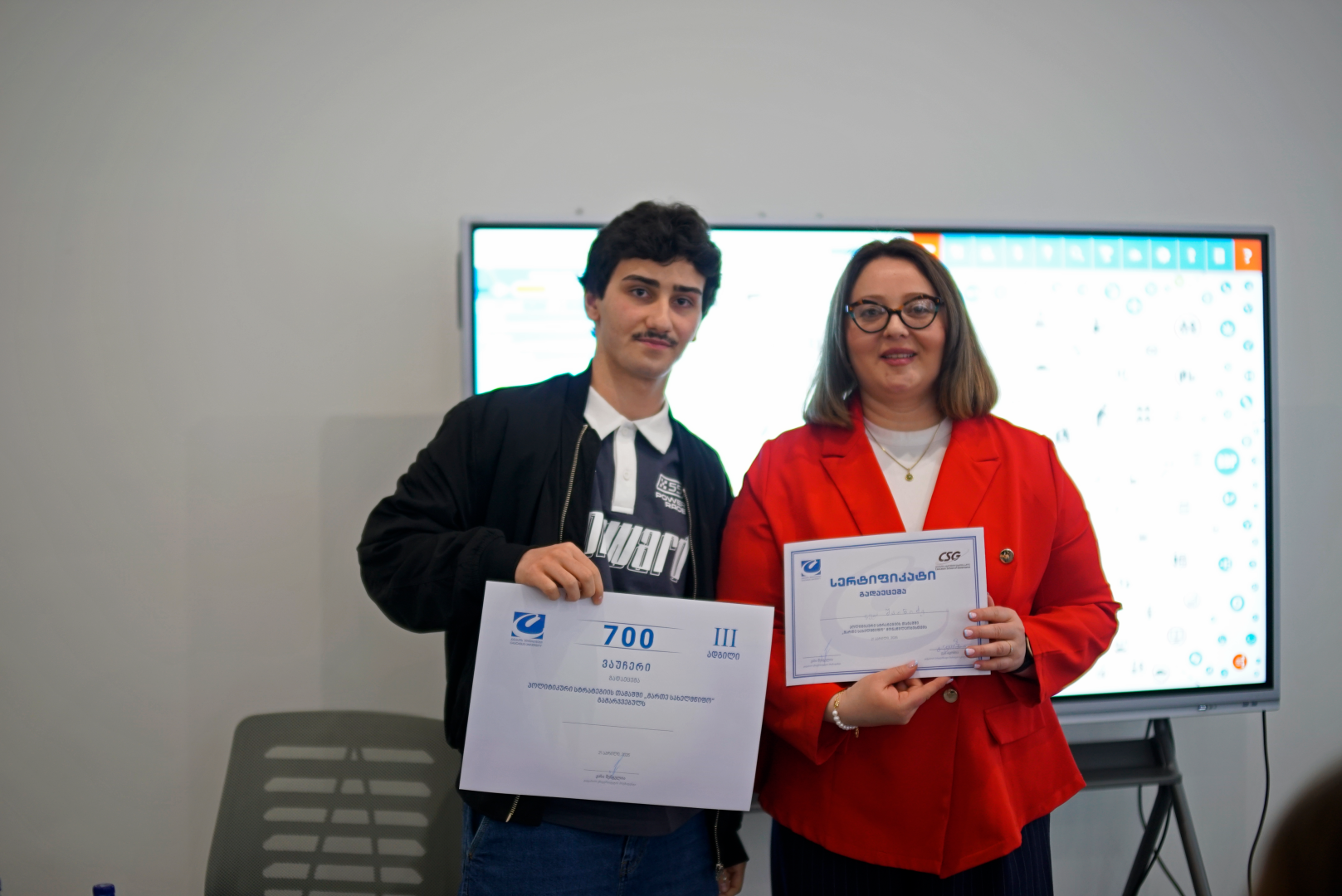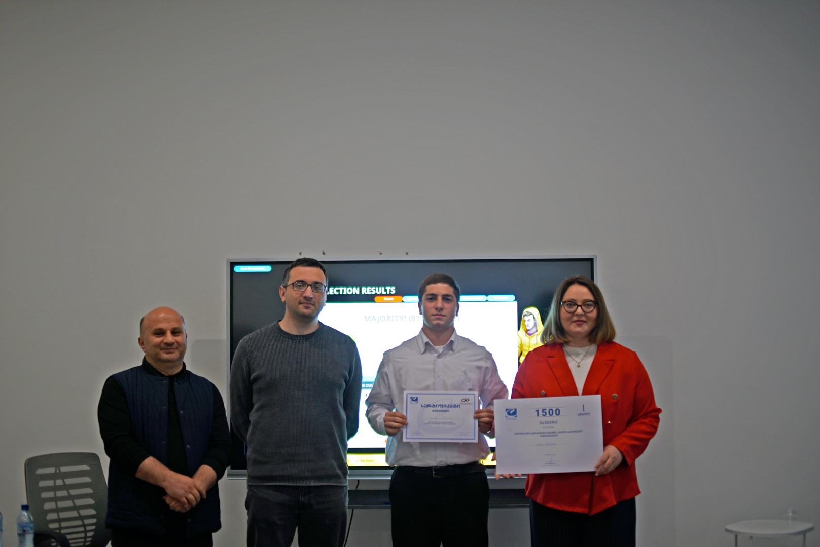 აბიტურიენტებს შორის გამოვლინდა ლიდერობის, არგუმენტირების და საჯარო გამოსვლის საუკეთესო უნარების მქონე სამი მონაწილე. გამარჯვებულებს გადაეცათ სახელმწიფო მართვის სკოლის საგანმანათლებლო პროგრამების სასწავლო ვაუჩერები: