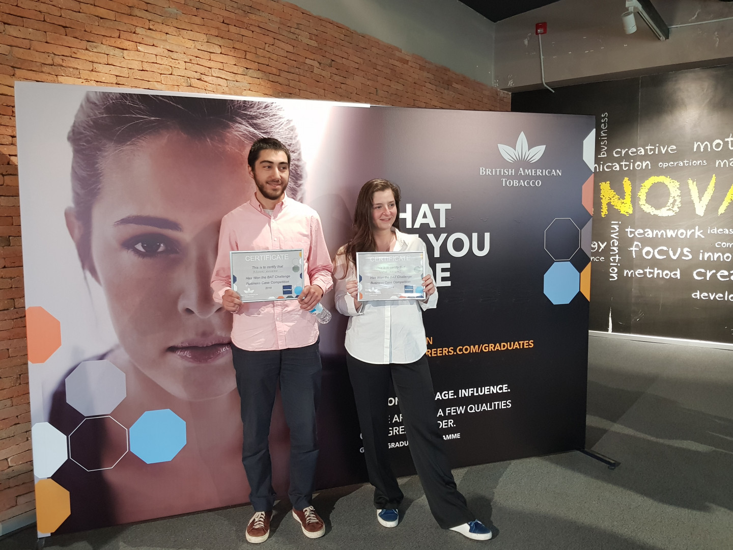 On the final stage, the teams made presentations on the business cases given to them. The winning team beat the others at one point advantage. CU student Malkhaz Khoperia and a student from GIPA, Nutsa Asatiani will have a month-internship at British-American Tobacco.