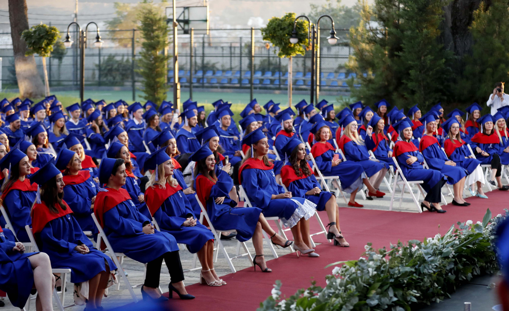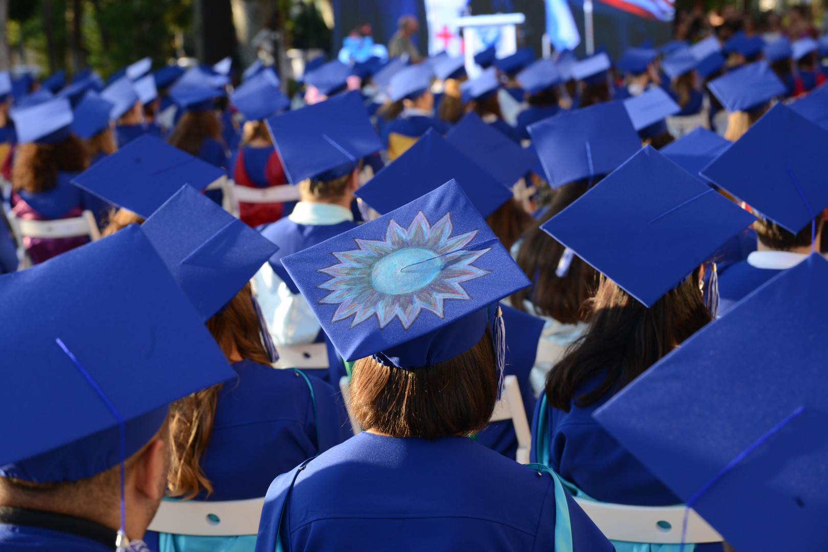 The graduation ceremony traditionally ended with hat throwing and ceremonial fireworks.