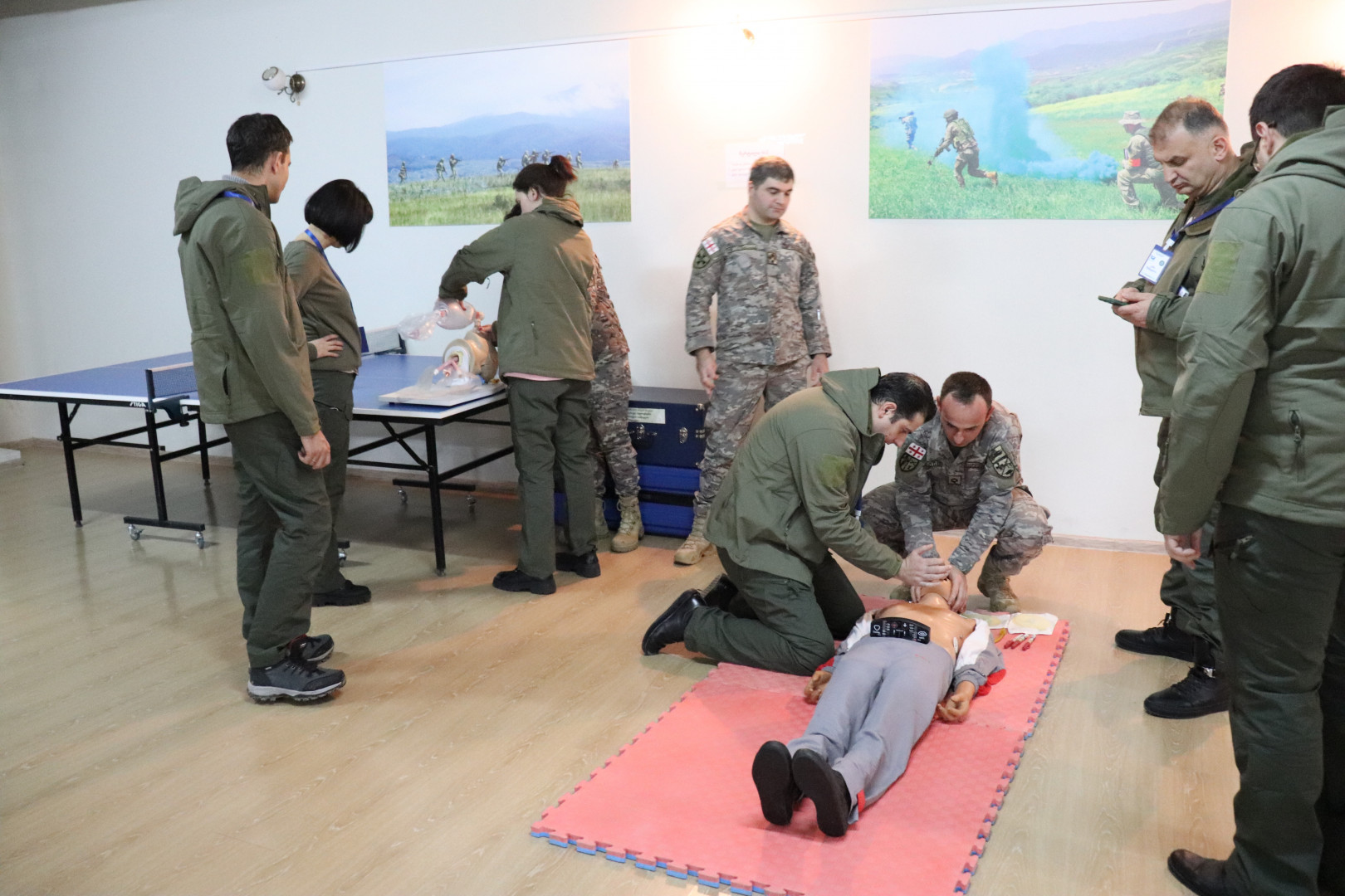 The university representatives underwent a four-day individual combat training course at the military base in Krtsanisi Township with the assistance of the commanders and instructors of the general military center. The course included theoretical and practical instruction in military medical, topographical, engineering, shooting, and civil defense.