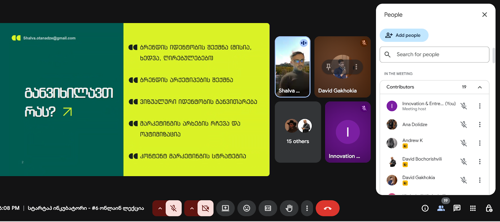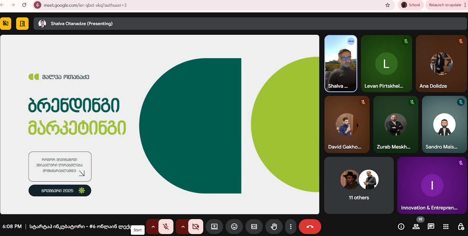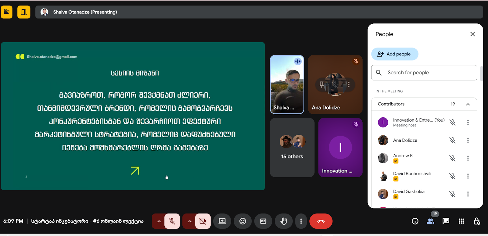 On November 17, within the framework of the Startup Incubator Program, the sixth online lecture was held and delivered by Shalva Othanadze.