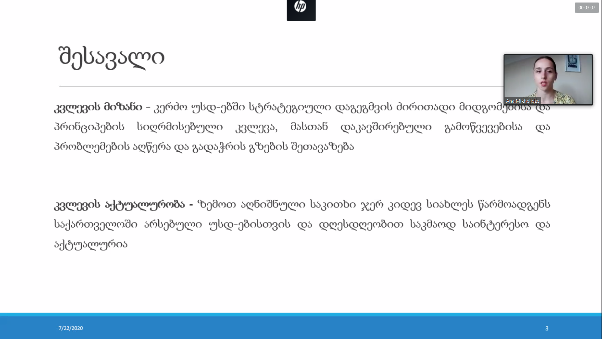- Ana Mikhelidze - "Basic Principles of Strategic Management and Challenges in Higher Education Institutions (Example of Georgia)"