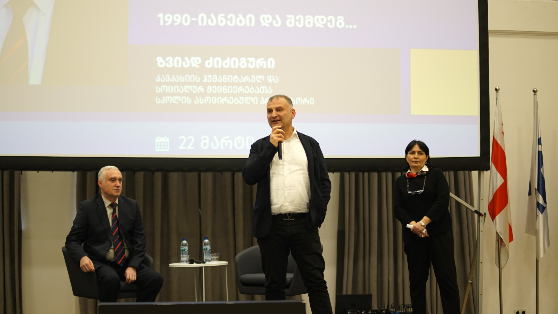 On March 22, the Caucasus University conference hall hosted the presentation of the book "Episodes from the recent history of Georgia. The 1990s and after..." by the associate professor of the School of Humanities and Social Sciences, Zviad Dzidziguri. The book was published as part of Caucasus University's internal funding program for research activities. The project was carried out by the School of Humanities and Social Sciences at Caucasus University, under the leadership of Professor Guranda Chelidze.