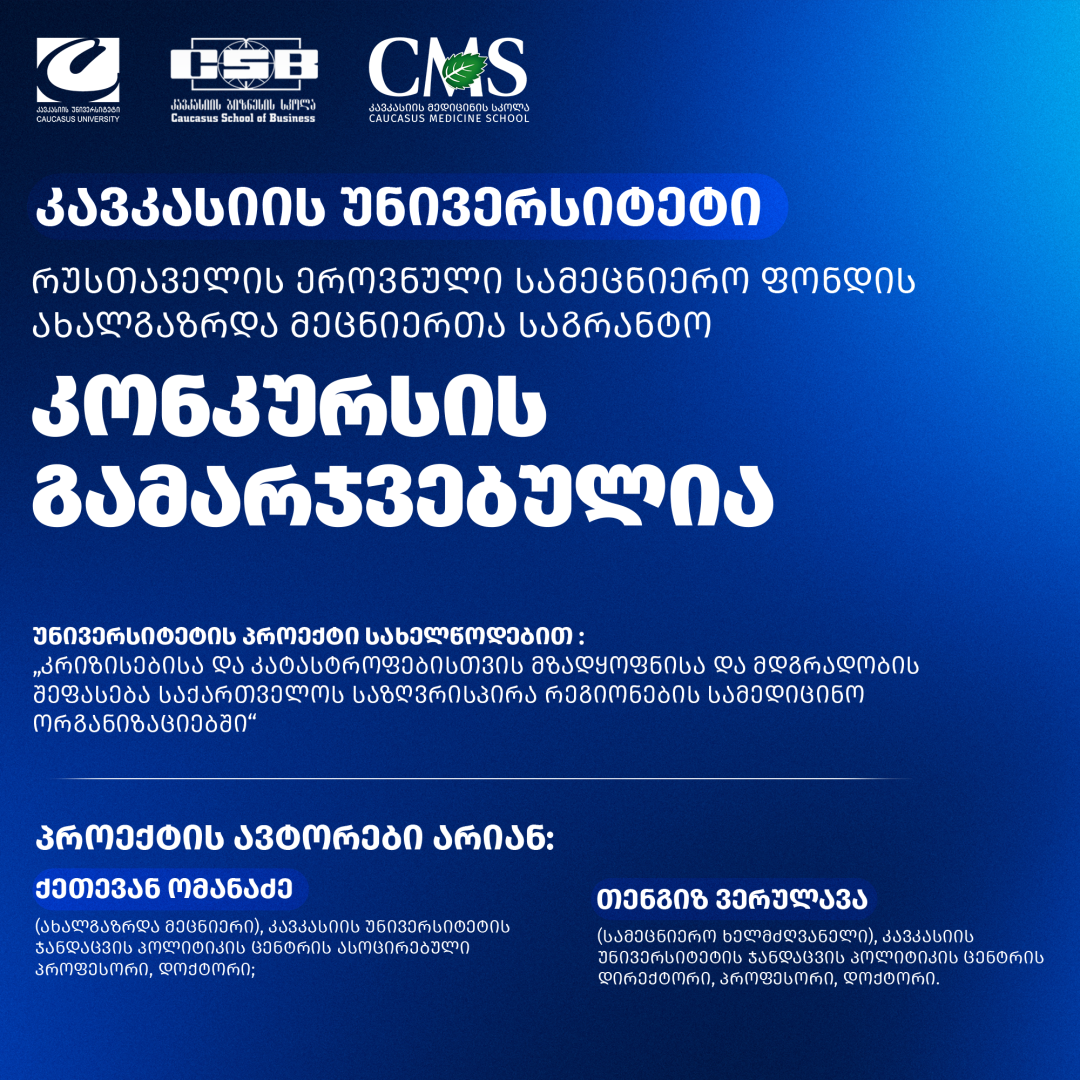 კავკასიის უნივერსიტეტი რუსთაველის ეროვნული სამეცნიერო ფონდის ახალგაზრდა მეცნიერთა საგრანტო კონკურსის გამარჯვებულია