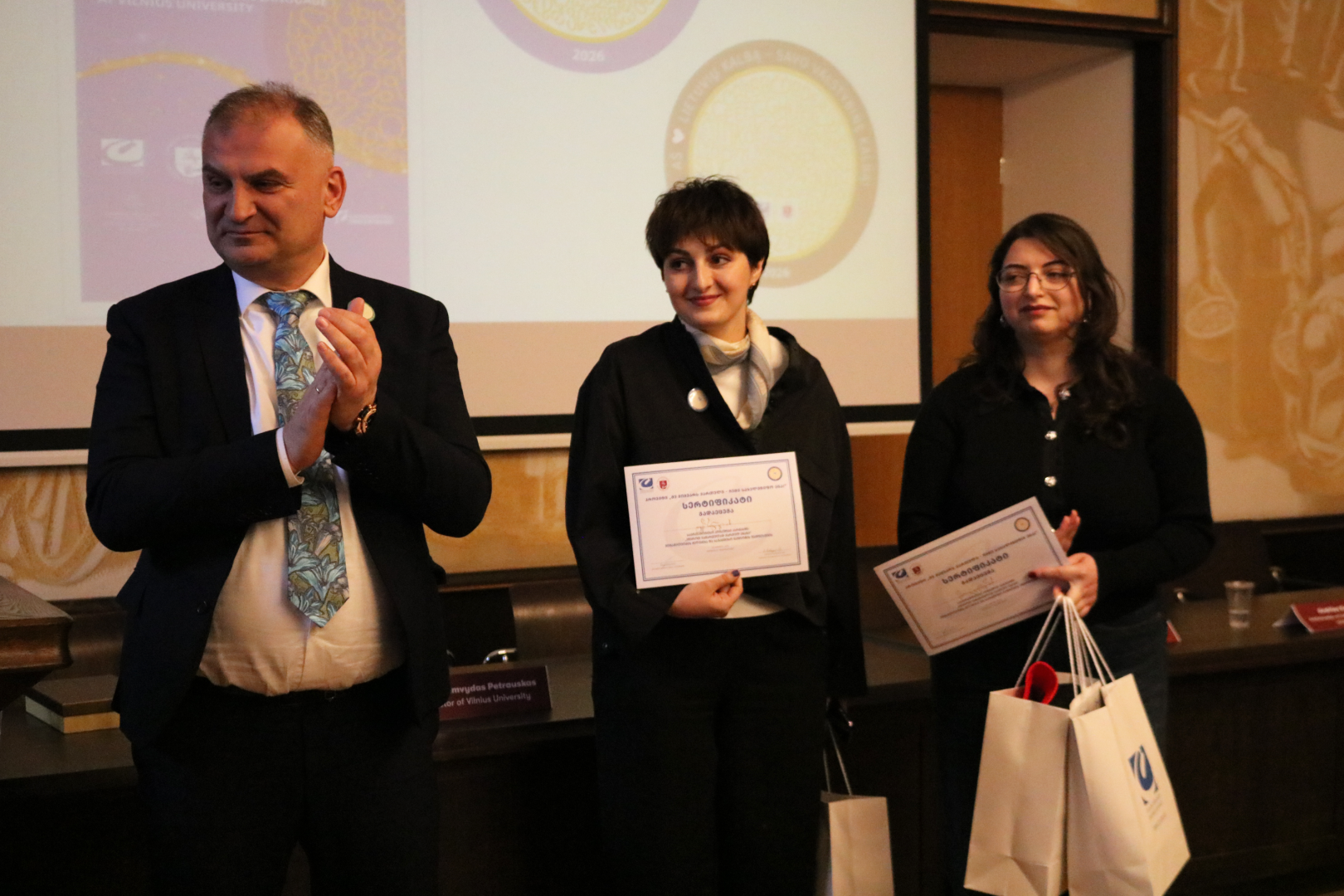 კავკასიის უნივერსიტეტის პრეზიდენტმა, მადლიერების გამოსახატად, განსაკუთრებული ჯილდო გადასცა: ვილნიუსის უნივერსიტეტსა და ვილია თარგამაძეს - პროექტის „მე მიყვარს ქართული- ჩემი სახელმწიფო ენა!“ განსაკუთრებული მხარდაჭერისთვის, ხოლო ბირუტე იონუშკაიტეს - ქართული ენისა და ლიტერატურის პოპულარიზაციაში შეტანილი განსაკუთრებული წვლილისთვის.