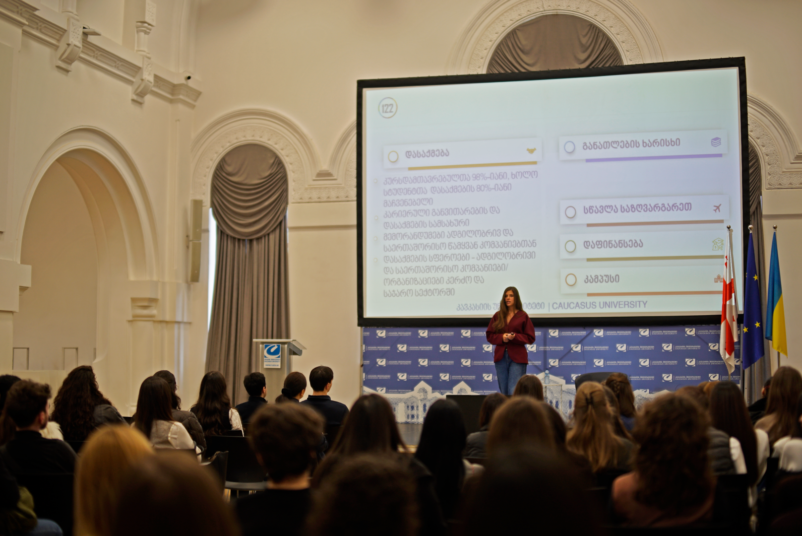 შეხვედრაზე მონაწილეებმა მიიღეს ინფორმაცია კავკასიის უნივერსიტეტის საბაკალავრო პროგრამებისა და იმ შესაძლებლობის შესახებ, რასაც CU აბიტურიენტებს სთავაზობს.